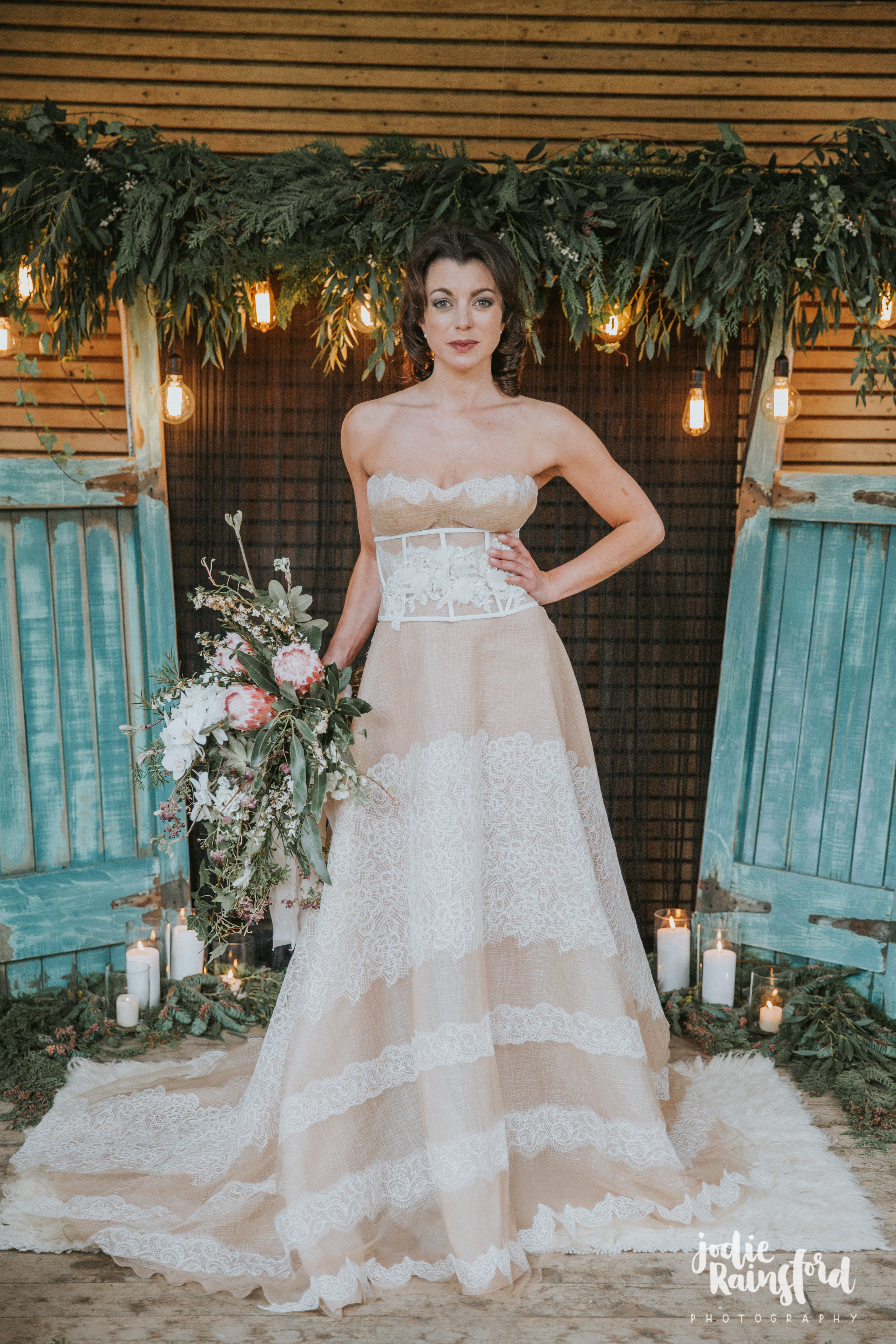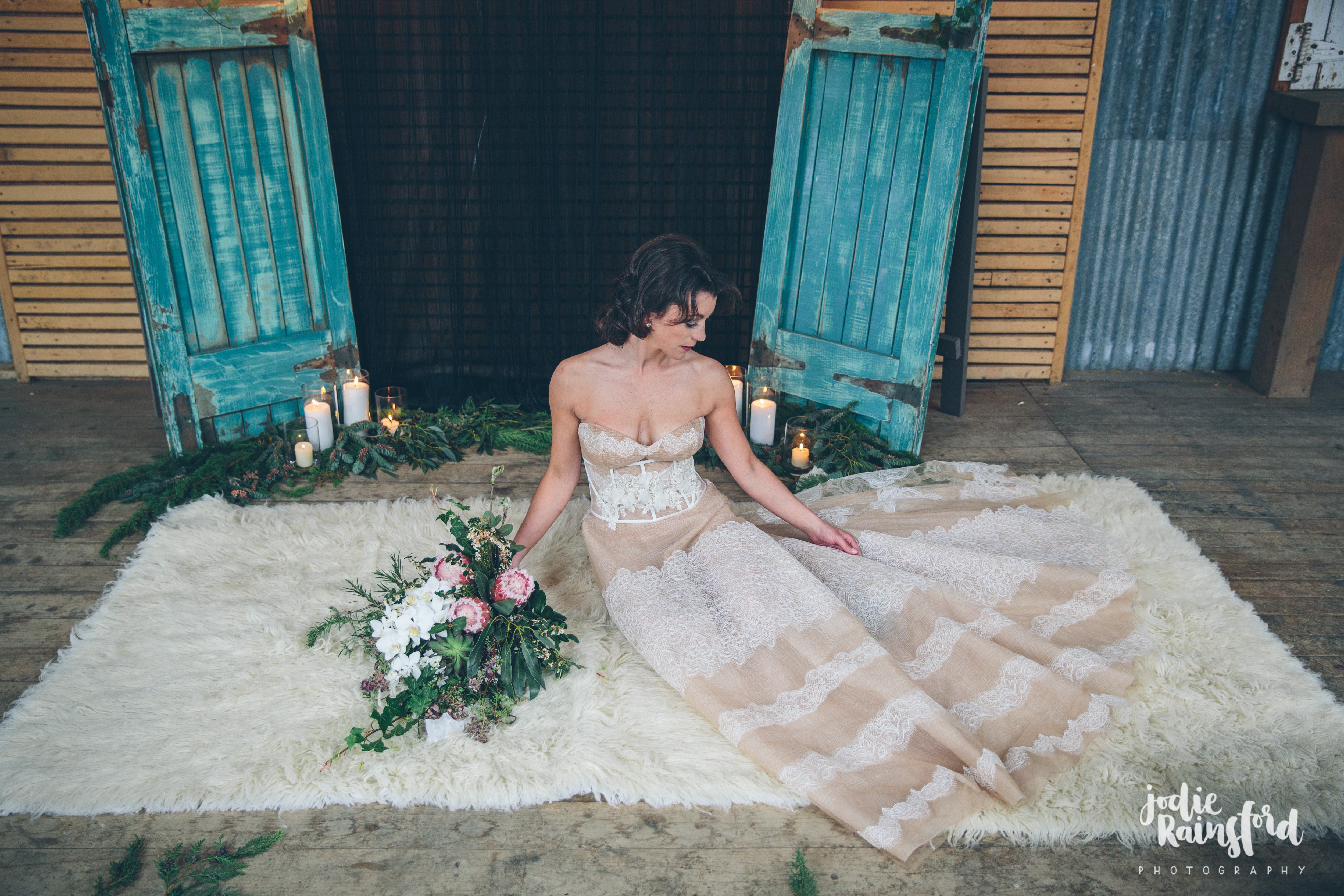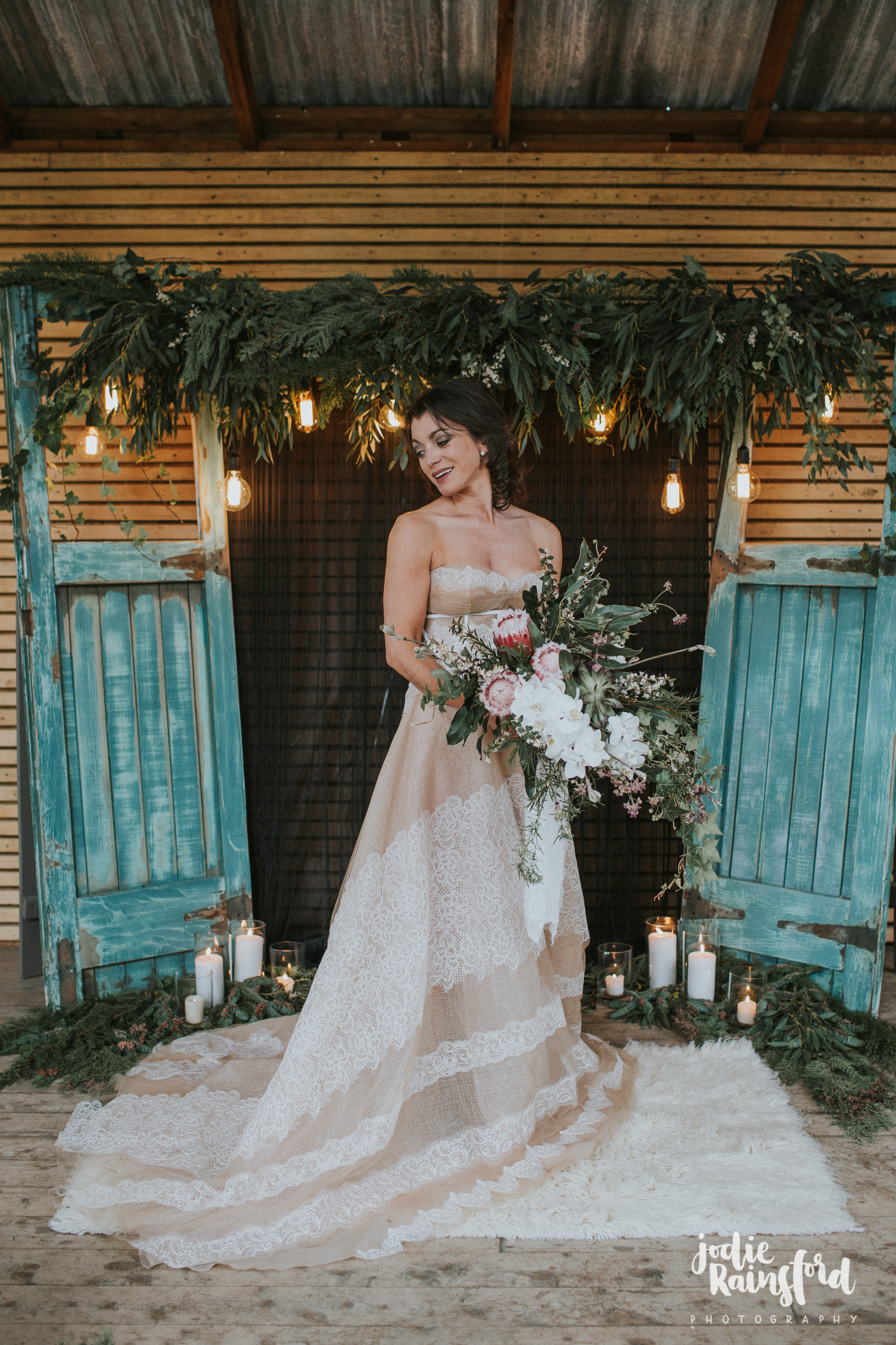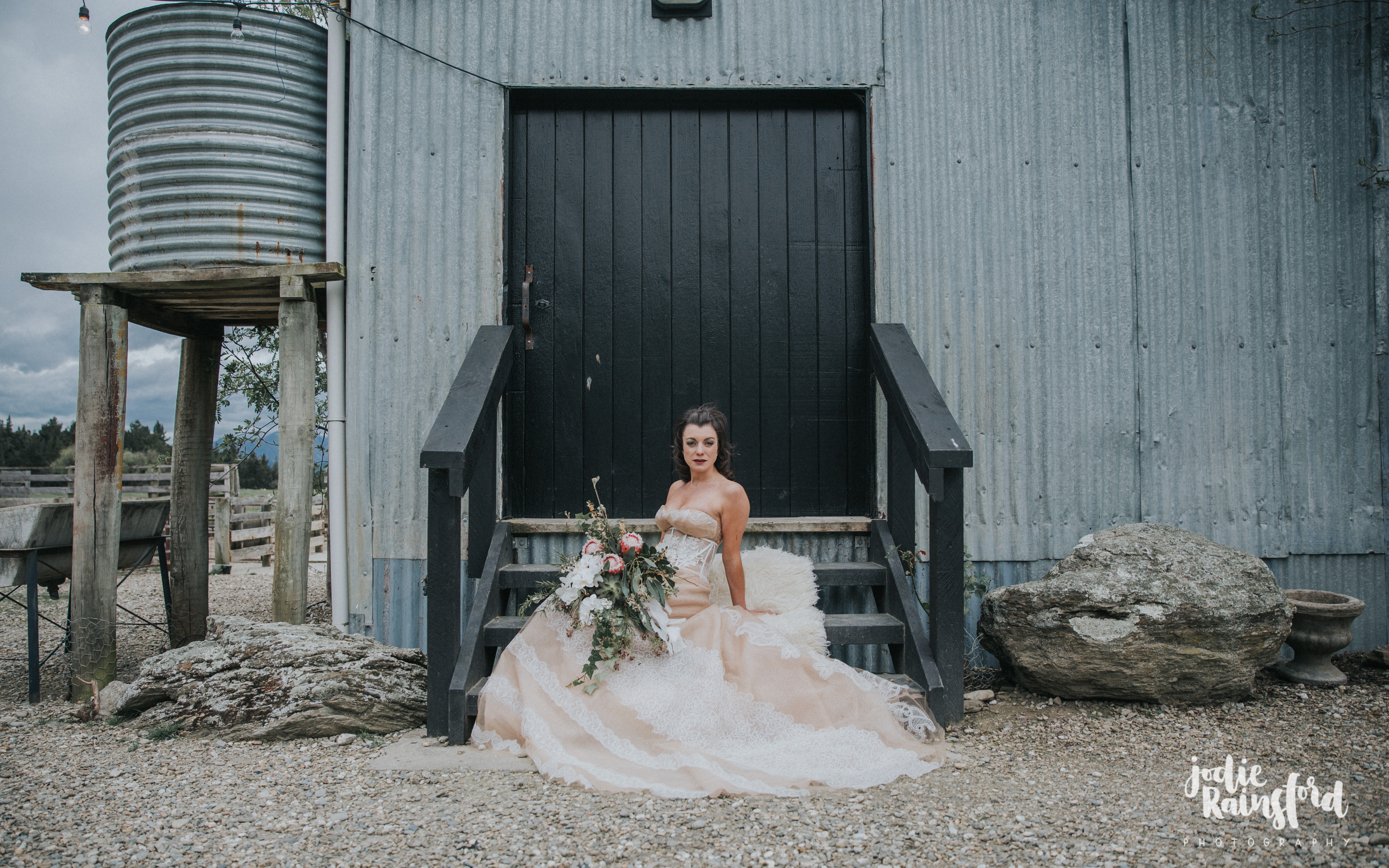 An amazing team came together to create this beautiful styled shoot on location at Criffel Station Woolshed. The talented Jodie Rainsford took these stunning shots of our 'Bride' dressed in an exquisite Novia gown.